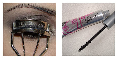 Curvex do Shu Uemura, para deixar os cílios bem curvadinhos e máscara da Eyeko.